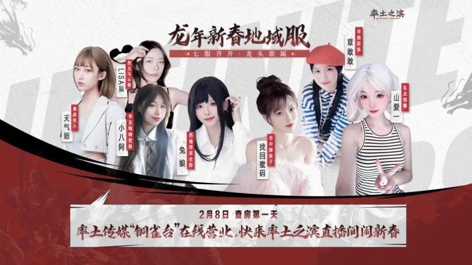 爲了讓玩家能夠更積極地進入新春地域服,率土結合地域話題,根據地域文化包裝出一個率土“銅雀臺傳媒”,邀請共七位不同地域的明星女主播在春節期間帶隊進服,進而通過直播的形式爲玩家做生動的遊戲內容講解。