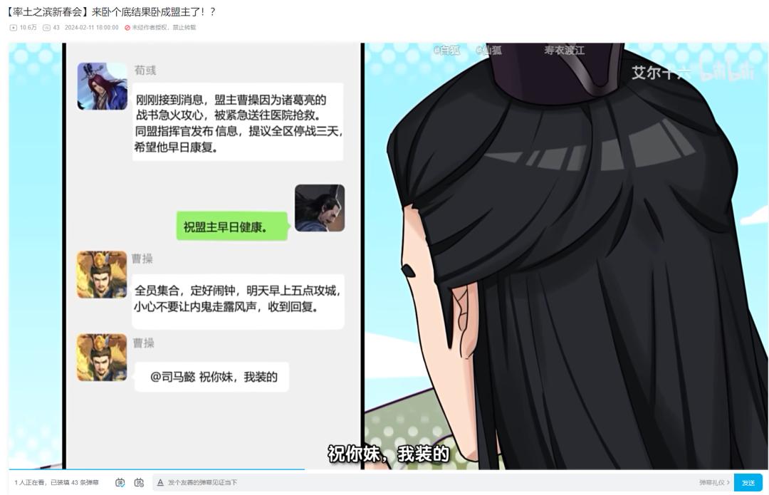 如此背景下,《率土之濱》聯合B站帶來的“率土新春會”則是將舞臺交給了玩家,讓玩家自行主導率土“春晚”的節目。