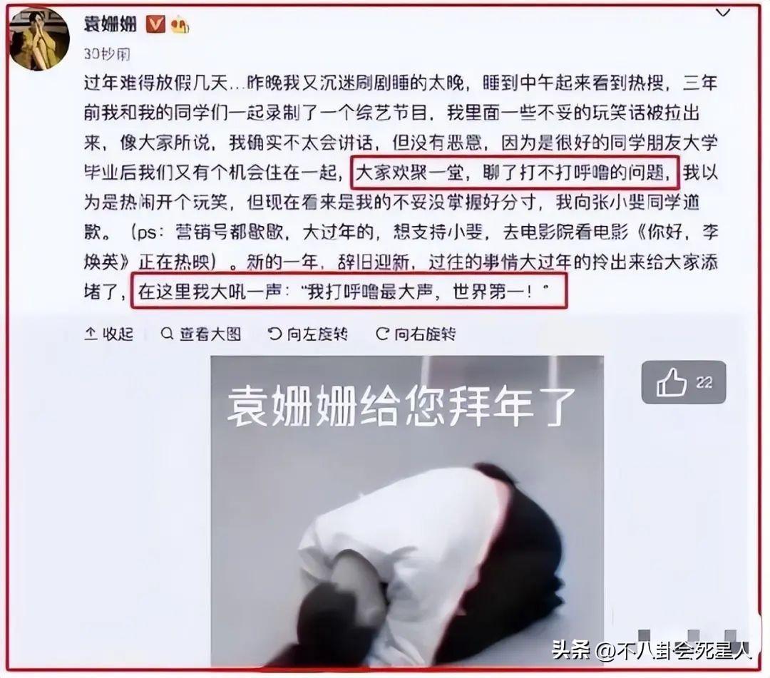 但後來又被網友扒出她早年在綜藝上和其他男星說張小斐睡覺打呼嚕的事情,遭到了張小斐本人的否認,最後袁姍姍只能出來道歉,這也讓網友們對她的好感再次下降。