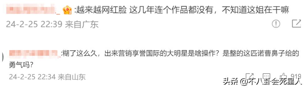評論區裏除了對袁姍姍鼻子的吐槽,也有網友感慨,袁姍姍現在不僅是臉變了,其實她的事業也大不如前了,甚至評論區有網友說袁姍姍這幾年沒有作品。