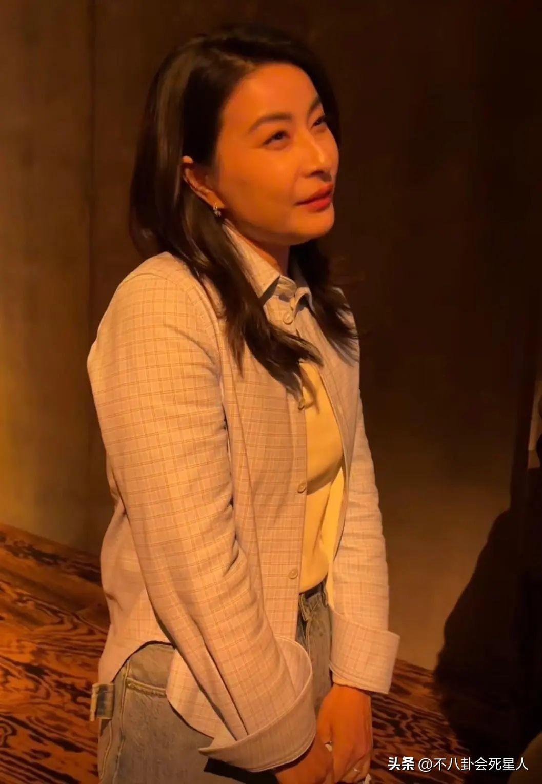 她穿着一條牛仔褲,一件白色內搭和藍色襯衫外套,頭髮隨意披散着,看不出精心打理過,妝容也是接近淡妝,和其他女星們的“光芒四射”比起來,樸素得像路人。
