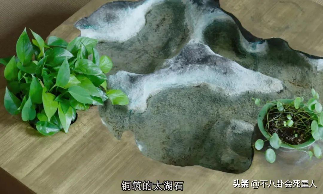 在李亞鵬的分享的一段視頻中,他向大家展示了他很愛的銅築的太湖石,稱是梁建國老師的一個作品,山中有水,禪意之美。
