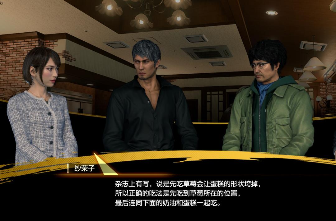 舉個例子,如果你在某個餐廳點了合適的套餐,就會觸發一場隊友對話,他們會針對“草莓蛋糕到底是先喫奶油還是先喫蛋糕”展開了一場小討論,最後紗榮子用“雜誌上看來的專家說法”終結了爭論。