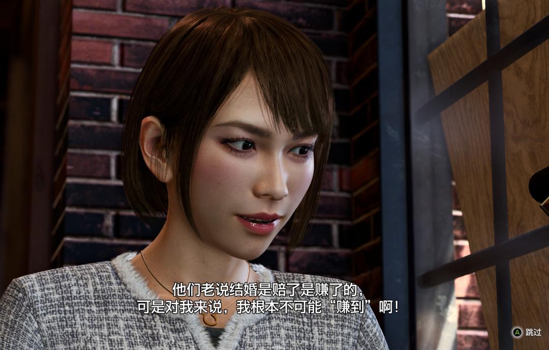 這一段劇情非常精髓,不僅鞏固了人物個性,還頗爲新鮮:對於一般遊戲而言,愛情通常會被簡化爲一種理想化的敘事元素。但在裏,愛情回到了生活本身中,對與錯不再那麼清晰,而是一邊愛着,一邊對抗着現實。當紗榮子說出那句——“他們老說結婚是賠了是賺了,可是對我來說,我根本不可能‘賺到’啊”——的時候,這個角色徹底地“活”了過來。