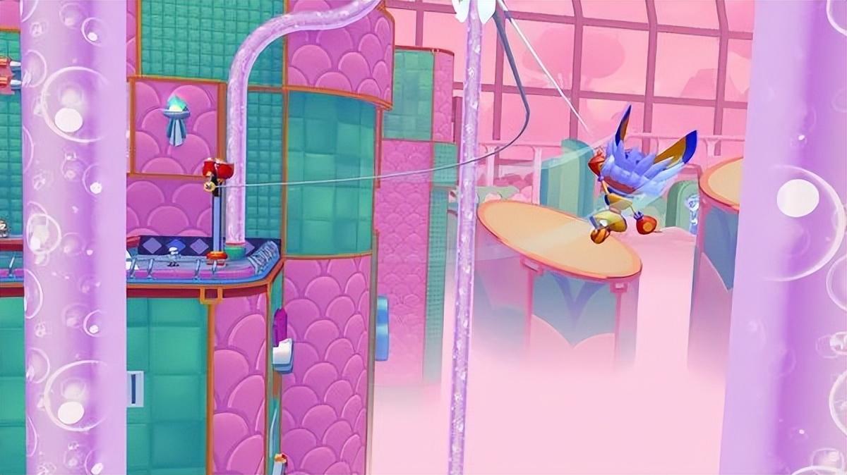 但實際上,如果真的有玩家抱着體驗 “索尼克”風味的想法而嘗試這部遊戲,又多半會感到失望。所謂“成也悠悠球敗也悠悠球”,儘管這是一個極其富有創意的設計,但因爲絕大部分動作都集中到了悠悠球上,在遊玩過程中,各種各樣的動作需求之間難免產生衝突。