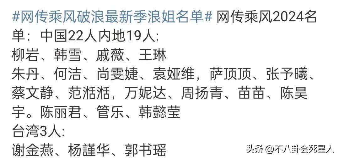 近日,網傳《浪姐5》最新名單曝光,內地19人,臺灣3人,國外6人,引起了一陣熱議。