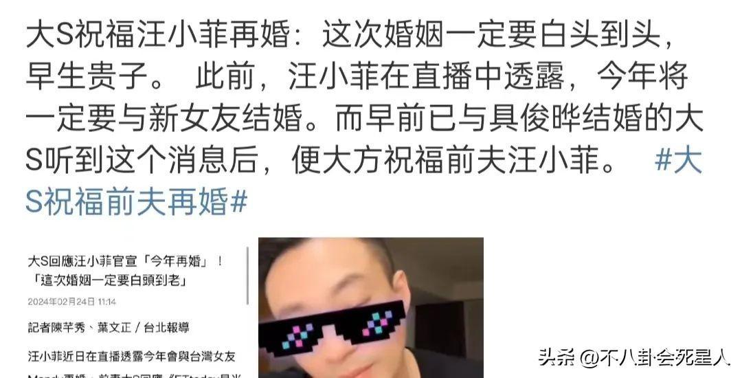 沒過多久,此事登上熱搜,大S送上祝福,“這次一定要白頭到老,早生貴子,爲他開心”。