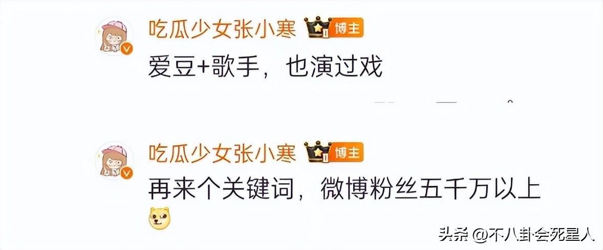 張小寒在評論區回覆網友,表示這次一定是大瓜,是真正的頂流,不是虛張聲勢,透露男頂流粉絲五千萬以上,是愛豆也是歌手,還演過戲。
