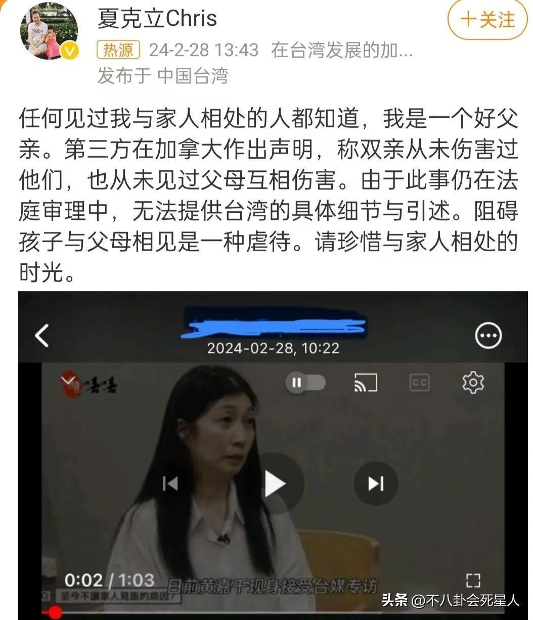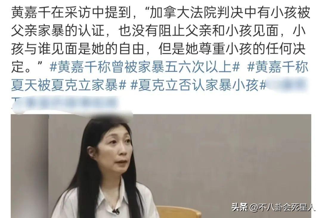 此外,黃嘉千還透露夏天被夏克立家暴,不願與夏克立見面,她從未阻止過女兒與父親見面。