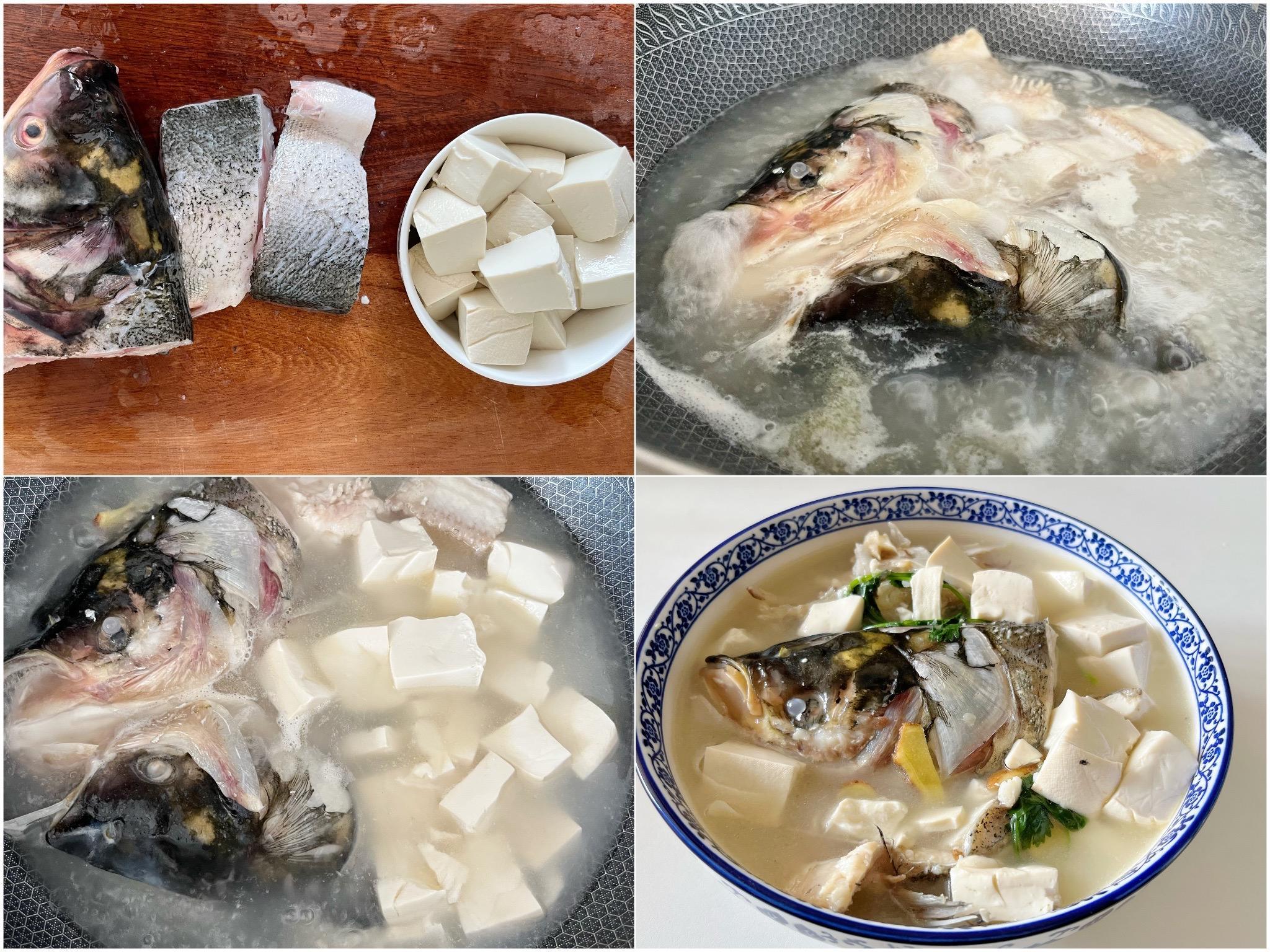 做法:魚頭洗淨,抹上料酒醃製15分鐘去腥,豆腐切塊備用。鍋中加油,下魚頭小火煎至兩面變色後,往鍋中加適量熱水,大火煮至魚湯發白。接着將豆腐下入鍋中,繼續煮5分鐘後,加些食鹽調味,最後放點香菜段,即可享用。