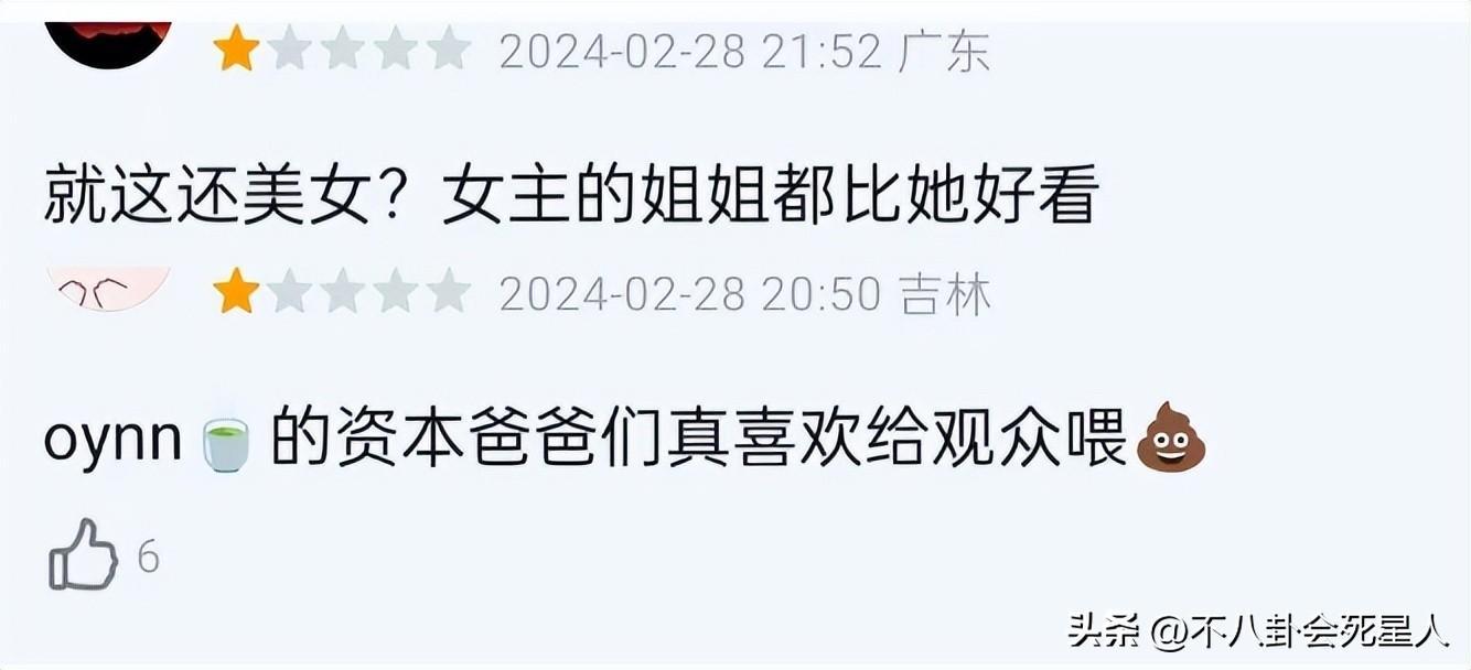 目前,在該劇的官方評論區下面,滿屏一星差評,幾乎都在吐槽歐陽娜娜。
