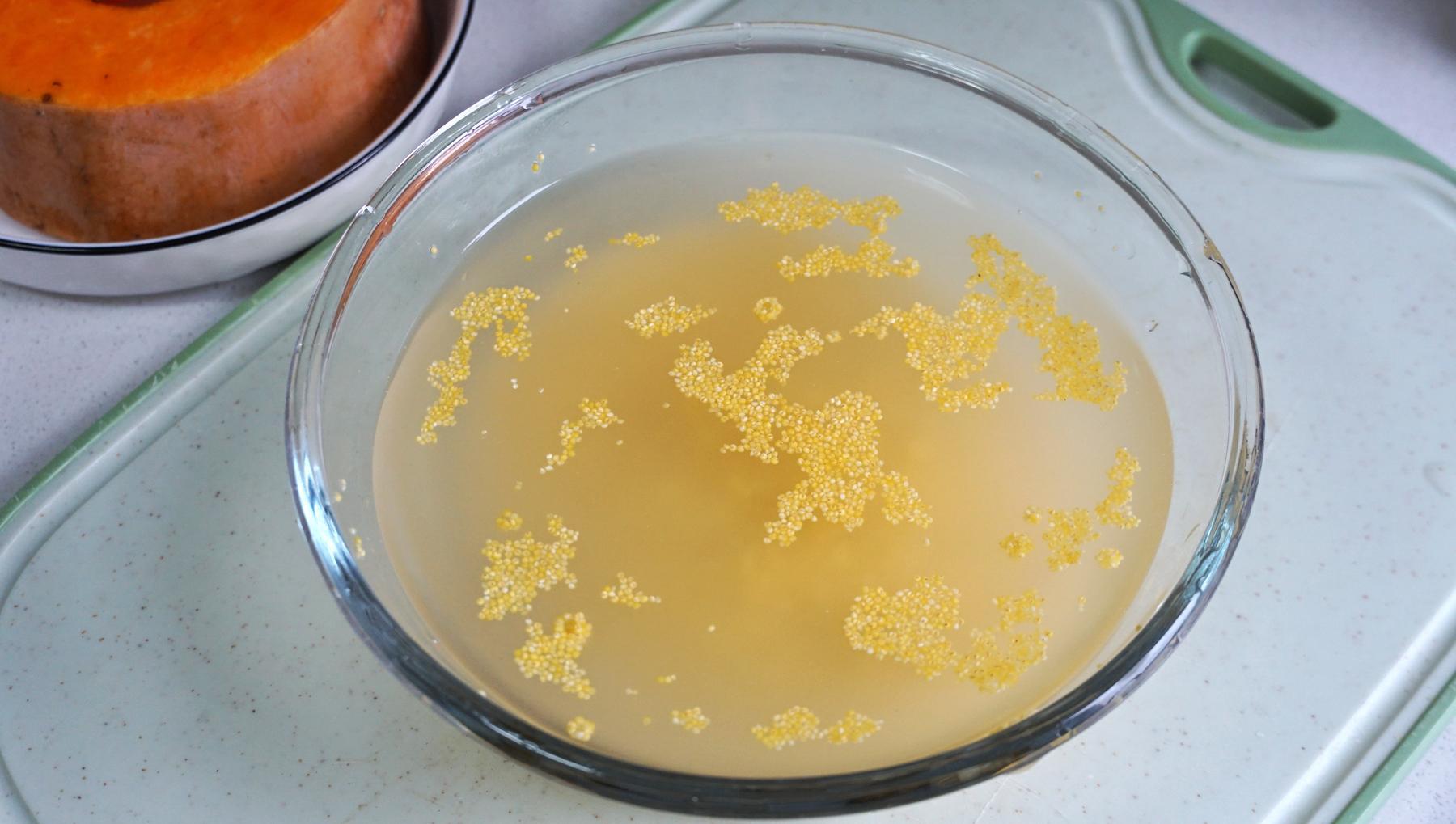 1、早上一起牀我就把小米泡着了,洗漱完就可以來煮了;