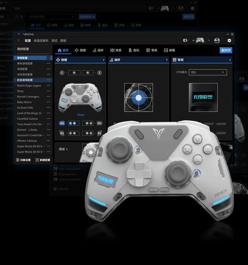 另外,飛智官方也推出了飛智空間站,在飛智空間站可以自己編輯一套或多套想用的按健配置,以適配各種不同類型的遊戲,比如賽車、FPS等等。