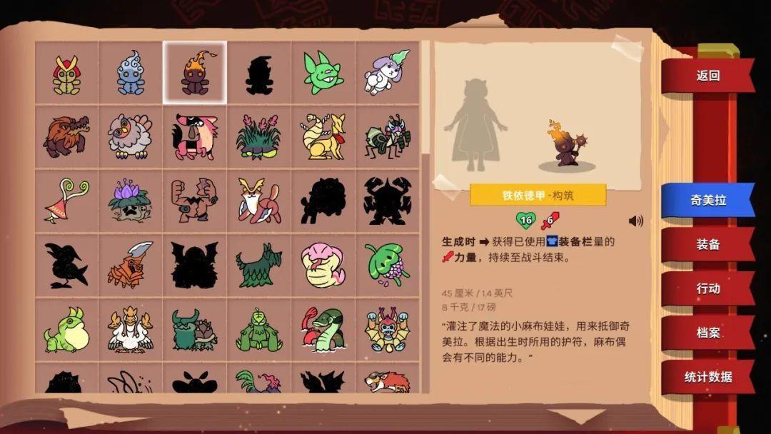 在跟奇美拉們鬥智鬥勇的同時,你也可以打開奇美拉圖鑑,滿足收集癖——在肉鴿元素眼花繚亂的如今,體量較小的《神骰傳說》憑藉獨特的抓寵養寵體驗,倒是帶來了幾分新鮮感。
