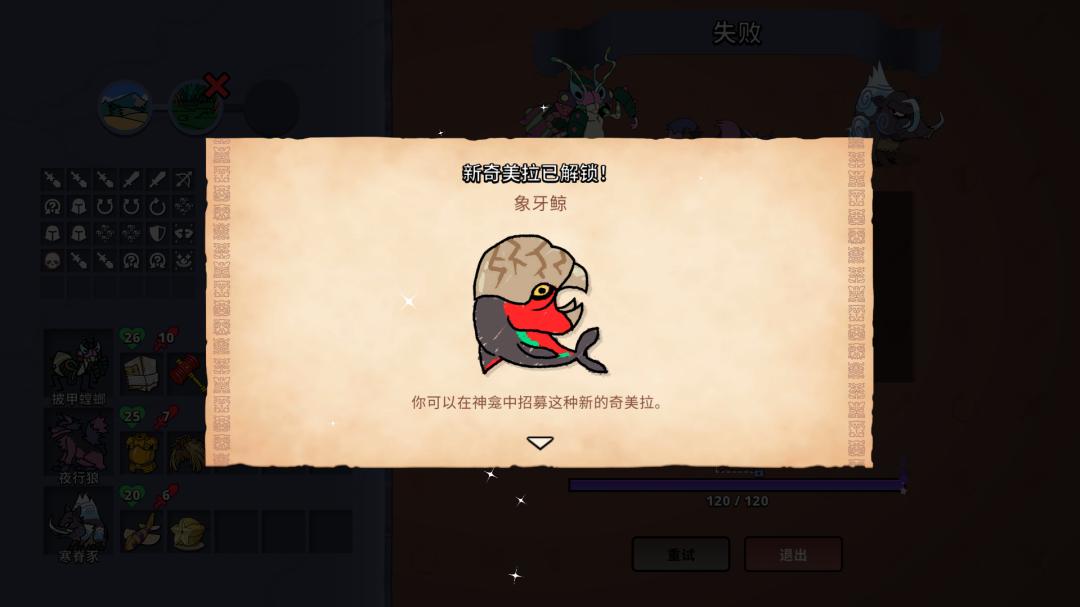 和大部分肉鴿遊戲類似,召喚師每次探索失敗遊戲也會給予一定的成長獎勵,本作會根據經驗值解鎖新的奇美拉,玩家有機會在下一輪探索中從神龕中解鎖它並選擇是否使用。