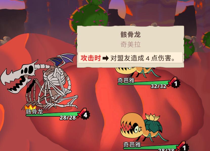 結合玩家對奇美拉、裝備及道具的選擇和構築,遊戲可以在簡單的操作中獲得巨大收益。比如流血、中毒等方式,結合轉換位置的骰子,可以讓對手因爲反覆掉換位置而掉血;又或者用己方位置的調換來觸發某些奇美拉的多次攻擊被動,總之玩家可以運用的方式頗多。