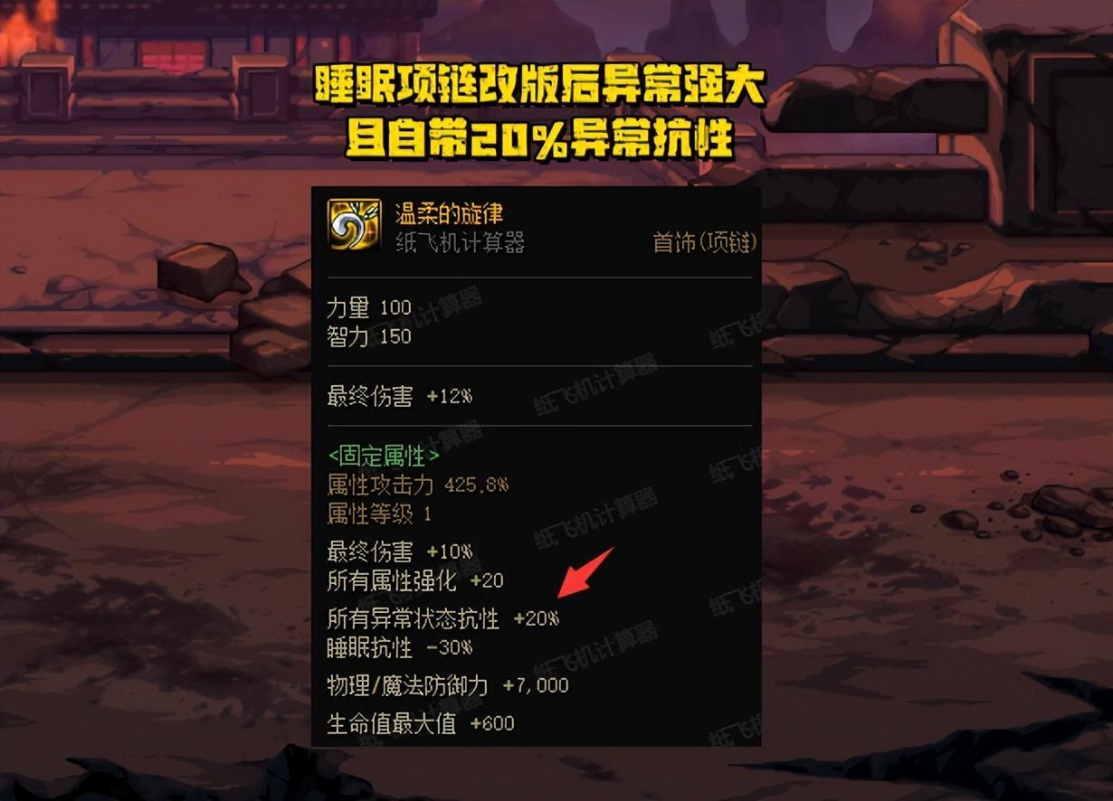 第二,把魔女項鍊換成睡眠項鍊,自帶20%異常抗性,同樣也虧2%左右傷害。