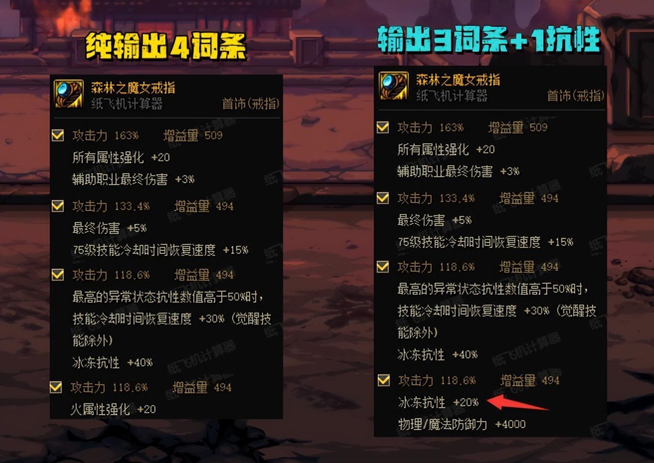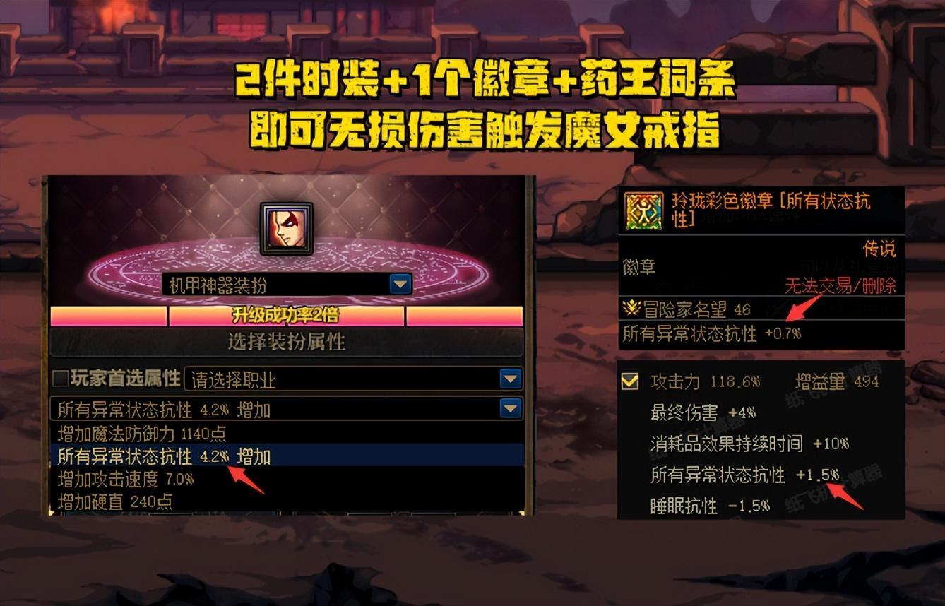 而如果是“TP流”觸發魔女戒指,只需要額外補上10%異抗就可以了,這裏可以用“2件時裝+徽章”來彌補抗性,對傷害幾乎沒有影響。