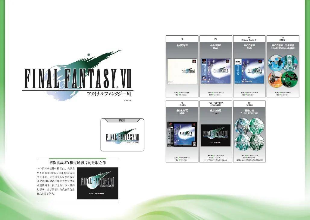 以我們最熟悉的《最終幻想7》爲例,每部作品會先用一段簡短概括介紹遊戲特色,然後列出已發行的所有版本。