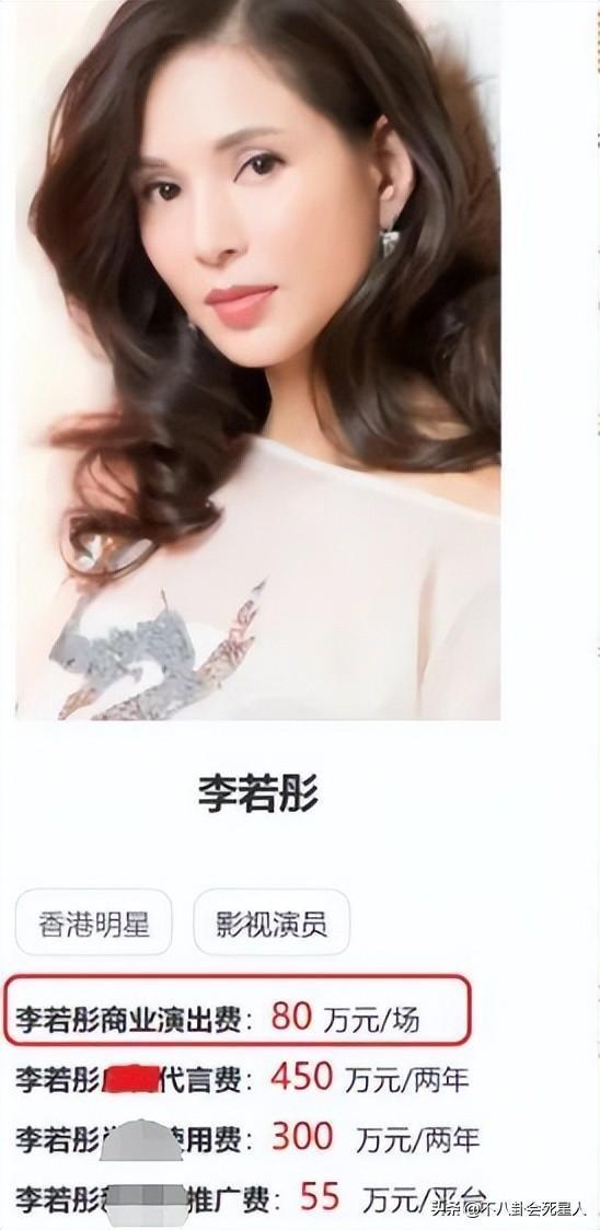 而像李若彤這種不但知名度高,還能靠“健身女神”攢了一波熱度的老牌港星,演出費最高的時候有80萬元。