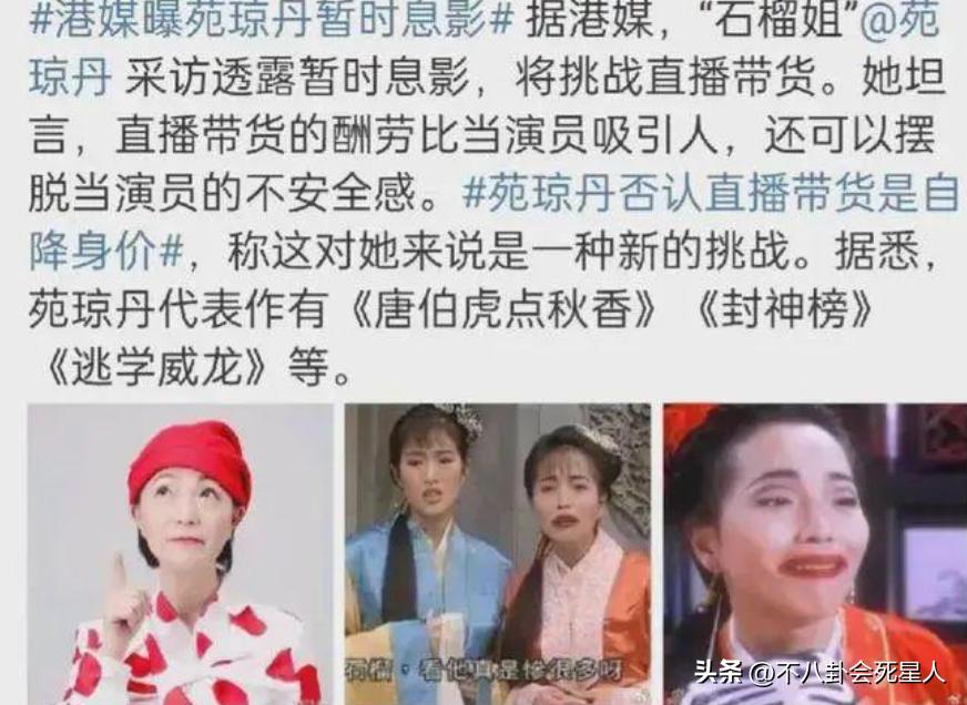 隨後她又說,5年後她也老了,應該也沒有精力再拍戲了,言下之意似乎有從演藝圈退休的意思,但雖然不拍戲,苑瓊丹卻並不打算完全退休,而是轉型當直播,甚至她還想在香港開“直播培訓班”,帶港人發家致富。