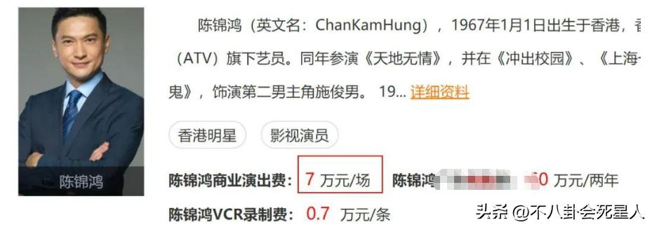 陳錦鴻在港圈復出拍戲的情況並不理想,繼而跑來了內地商演,雖然他在內地參加的商演不算很大型的,但他每場商演下來也能賺7萬元的演出費。