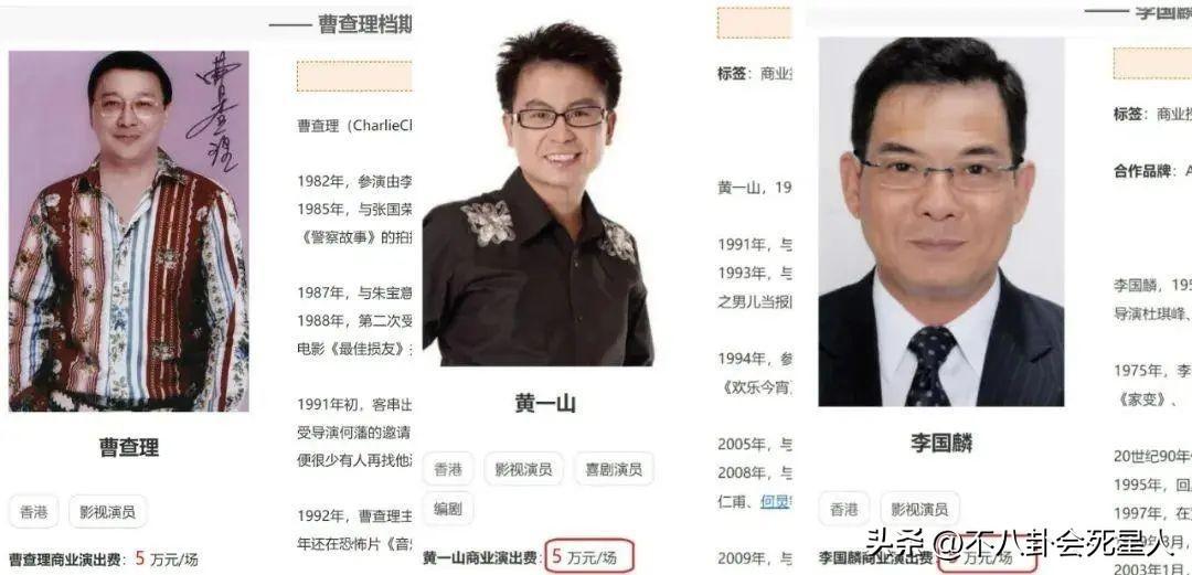 像陳錦鴻,黃一山,李國麟,麥家琪這種知名度和人氣不算很高的老牌港星在內地都能拿到5萬以上的演出費。