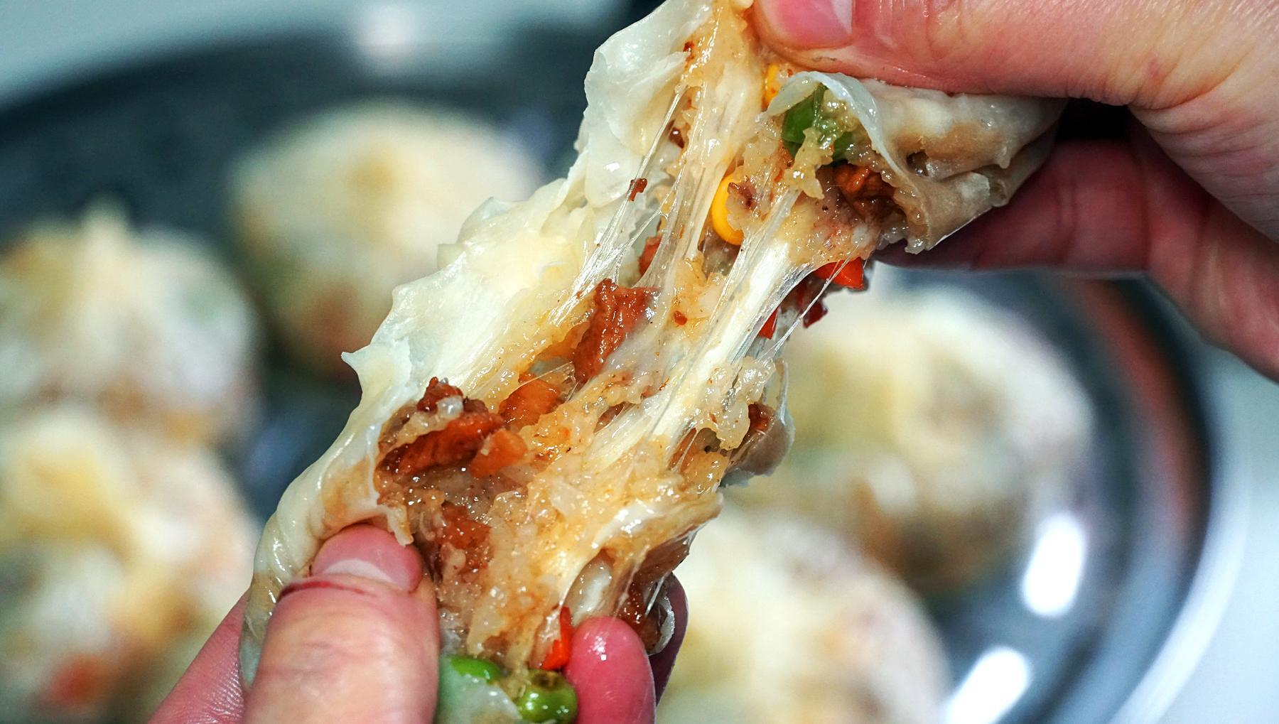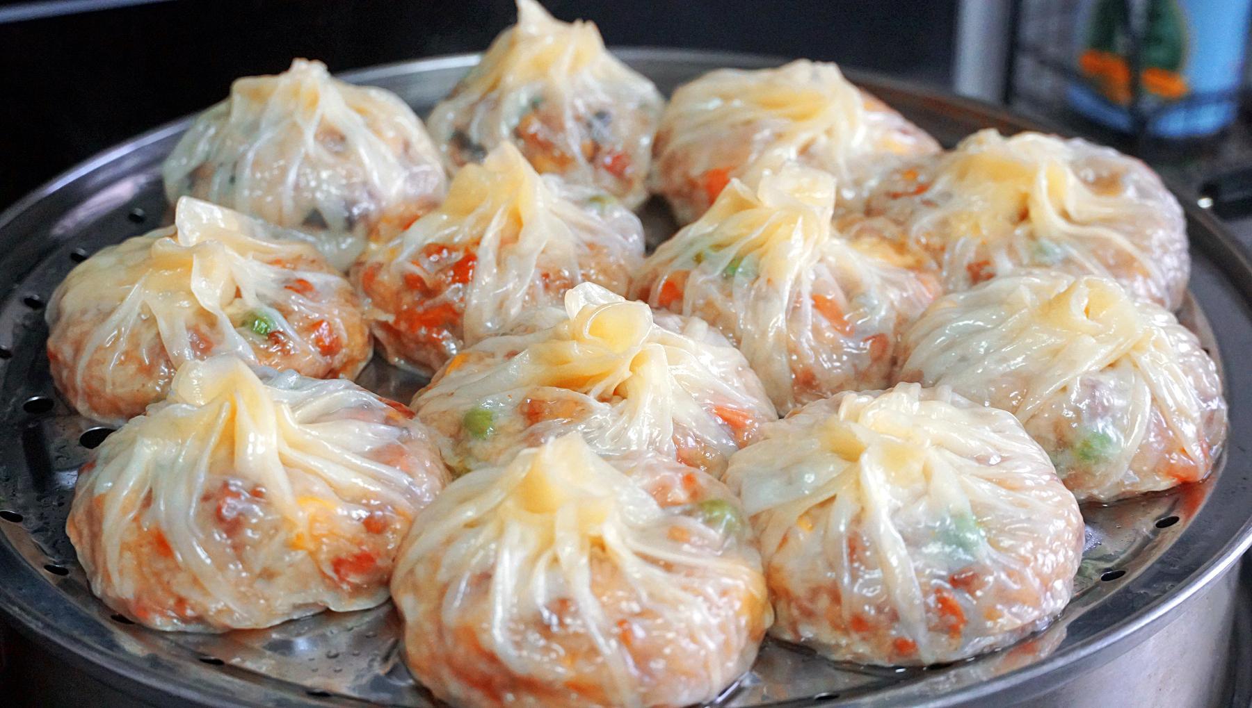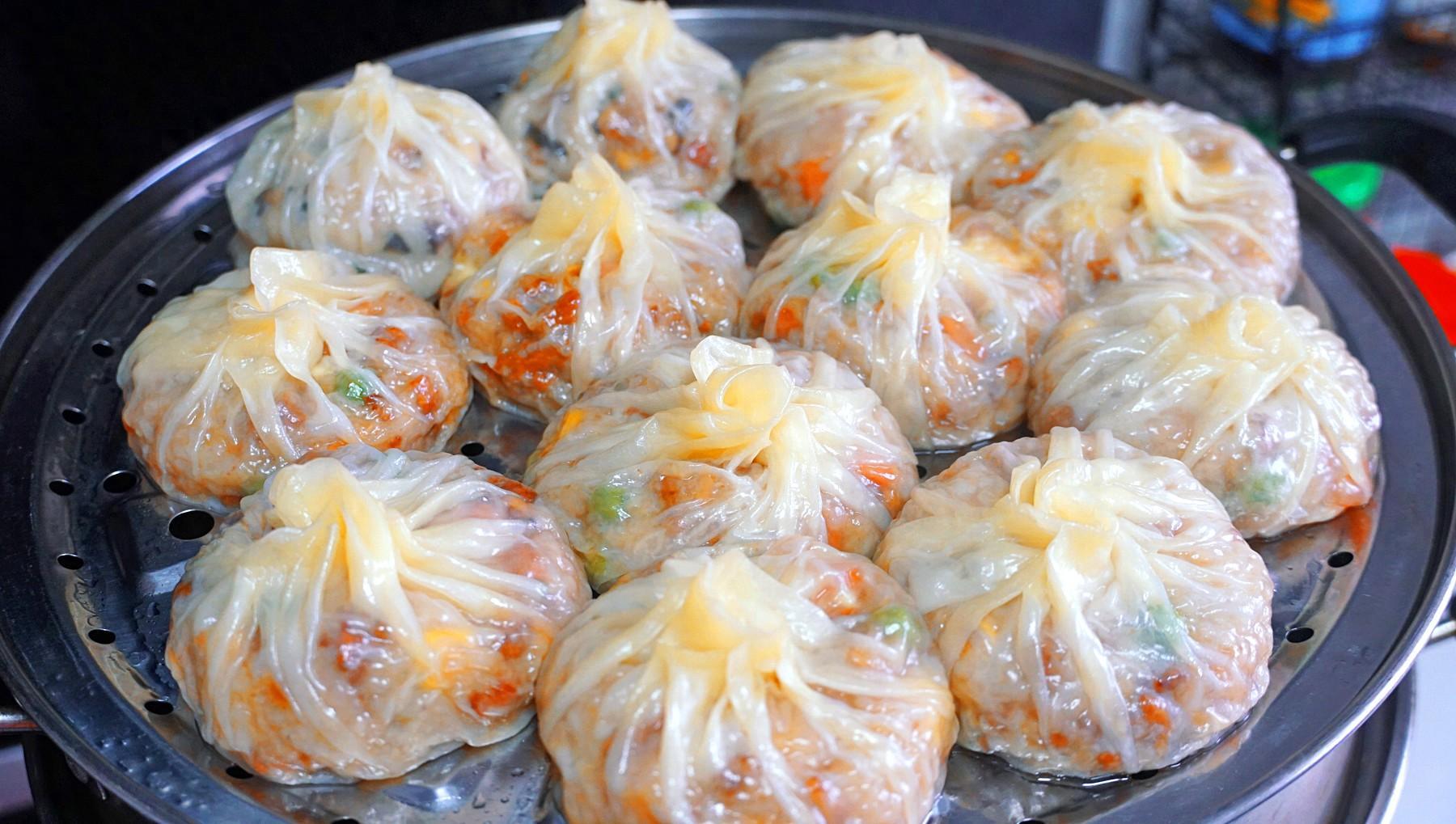 餡兒都是熟的,只要把燒麥皮蒸軟了就可以喫了,這個燒麥的皮兒真的很薄,擀了一下再蒸就會有很透的感覺,臘肉餡兒的超級香,蒸的時候味道就滿屋子飄了,喜歡喫臘味兒的真的可以試一試;
