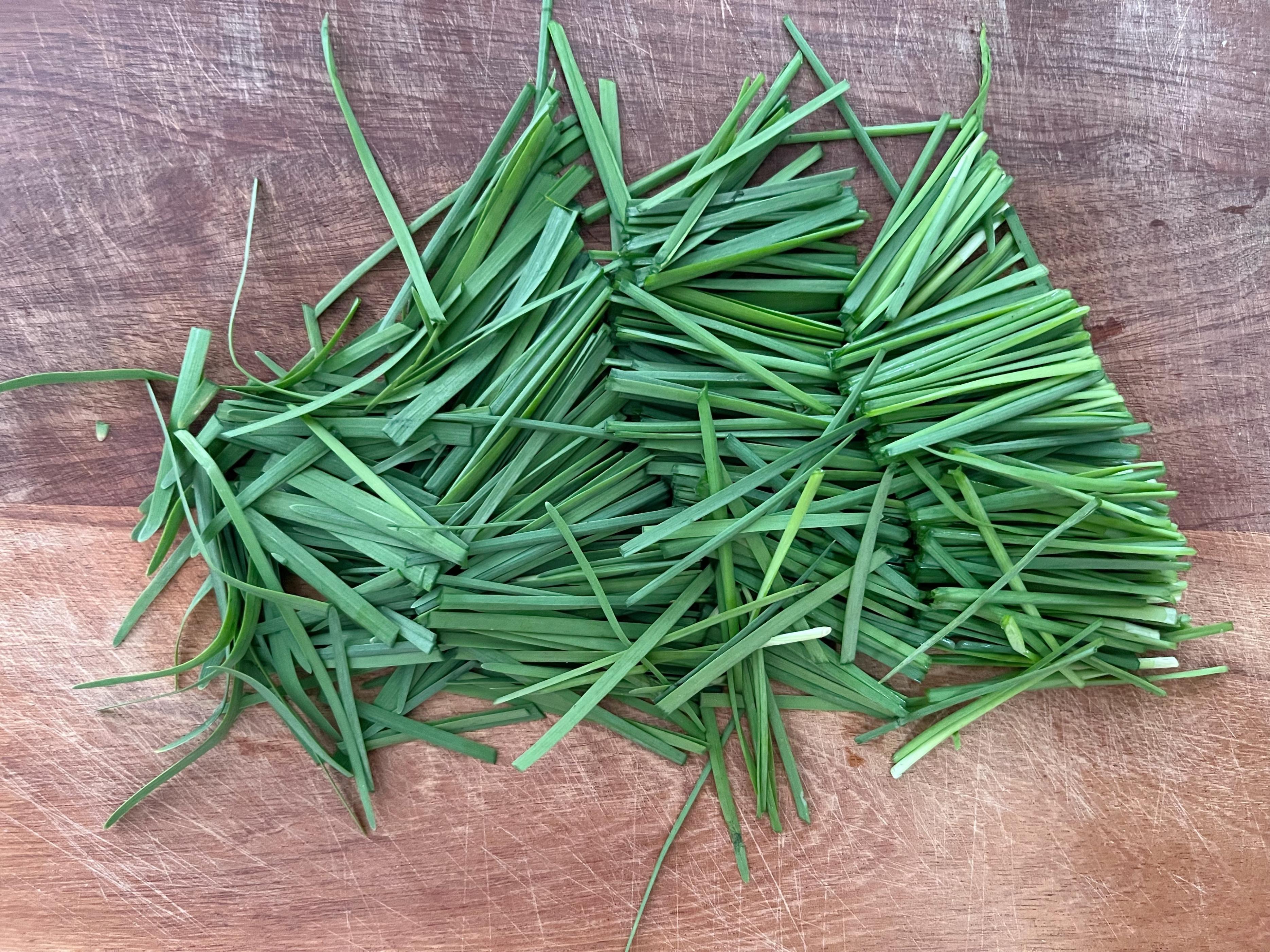 1、韭菜切段後洗淨,控幹水分備用;