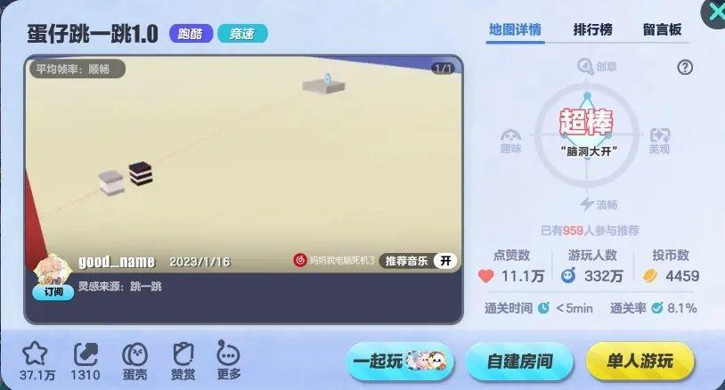 而低門檻、高上限的蛋碼,對蛋仔的意義卻絕不只是“工欲善其事,必先利其器”那麼簡單。重新審視《蛋仔派對》關於自身“國民原創樂園”的定位便會發現,蛋碼更大的價值在於模糊了創作者與遊玩者的界限,它從人類與生俱來的“玩性”入手,進一步推動了“創作者即玩家、玩家即創作者”的“全民創作”浪潮,也將蛋仔的UGC生態抬升至一個新的維度。