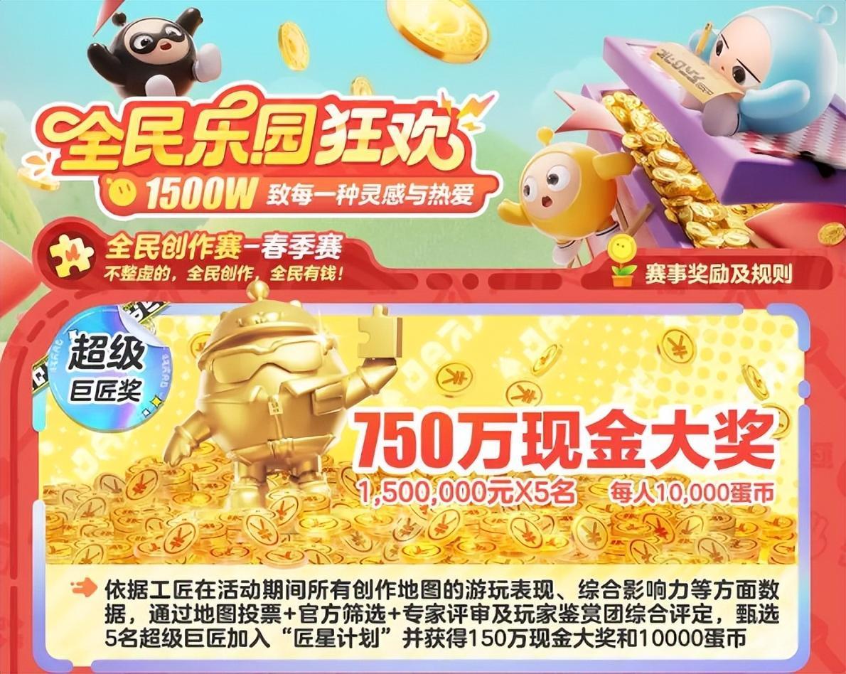 《蛋仔派對》官方對UGC生態一向大力扶持,且十分注重對創作者的激勵。定期召開的創作者交流會、頻繁展開的創作比賽、盛大的創作者頒獎典禮、大大小小的福利活動和現金獎勵……這些都是擺在明面上的“誠懇態度”,是令創作者一目瞭然的“創作收益”。