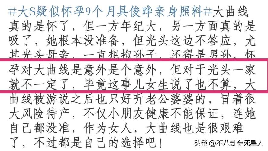 另一方面,前段時間,有媒體爆料大S懷孕9個月,還說大S不準備生這個孩子,但丈夫具俊曄的媽媽很希望能抱孫子,大S不顧自己身體狀態不好生孩子。