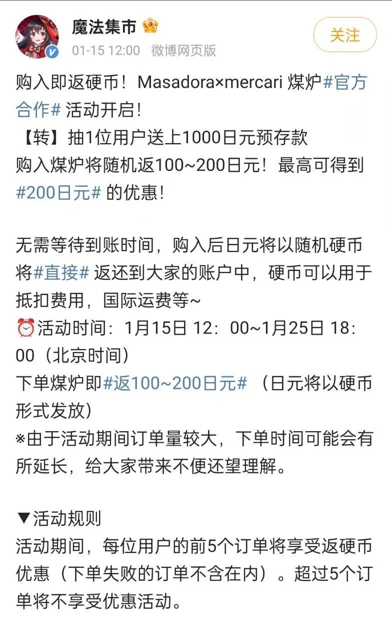 這段時期也恰逢國內買家開始湧向被稱爲「日本閒魚」的二手交易平臺「煤爐」(mercari),相比「駿河屋」「日亞」等店鋪,煤爐上能見到更多個人賣家擺出的稀缺品。而在這一過程中,其他更敏銳的同行率先和煤爐達成了官方合作,被彎道超車的魔法集市一定程度上陷入被動。