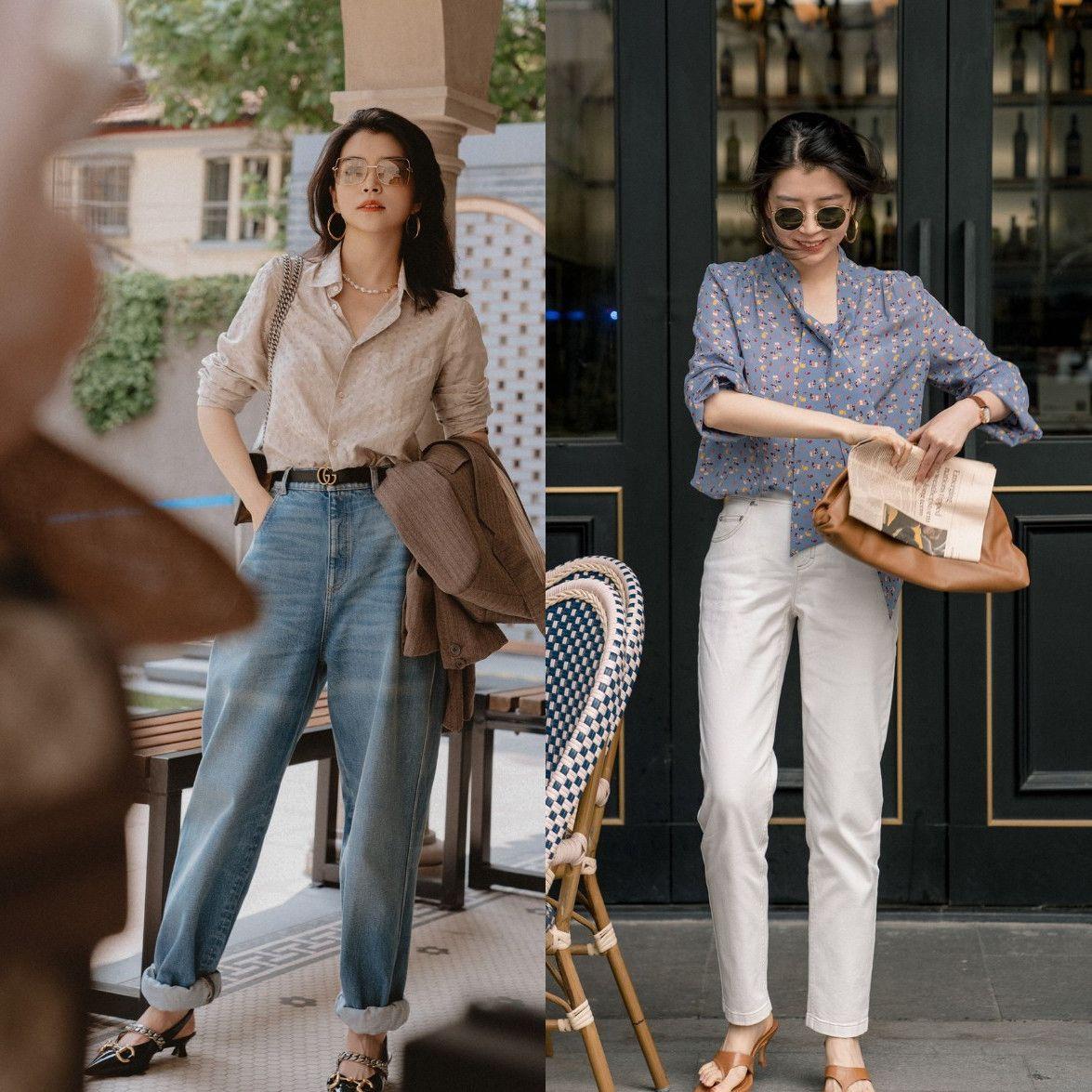 比如最經典的牛仔褲,不管怎麼搭配,都不容易出錯,和襯衫進行組合擁有更多的可能性,最後踩上一雙低跟鞋,還能提升造型的精緻感。