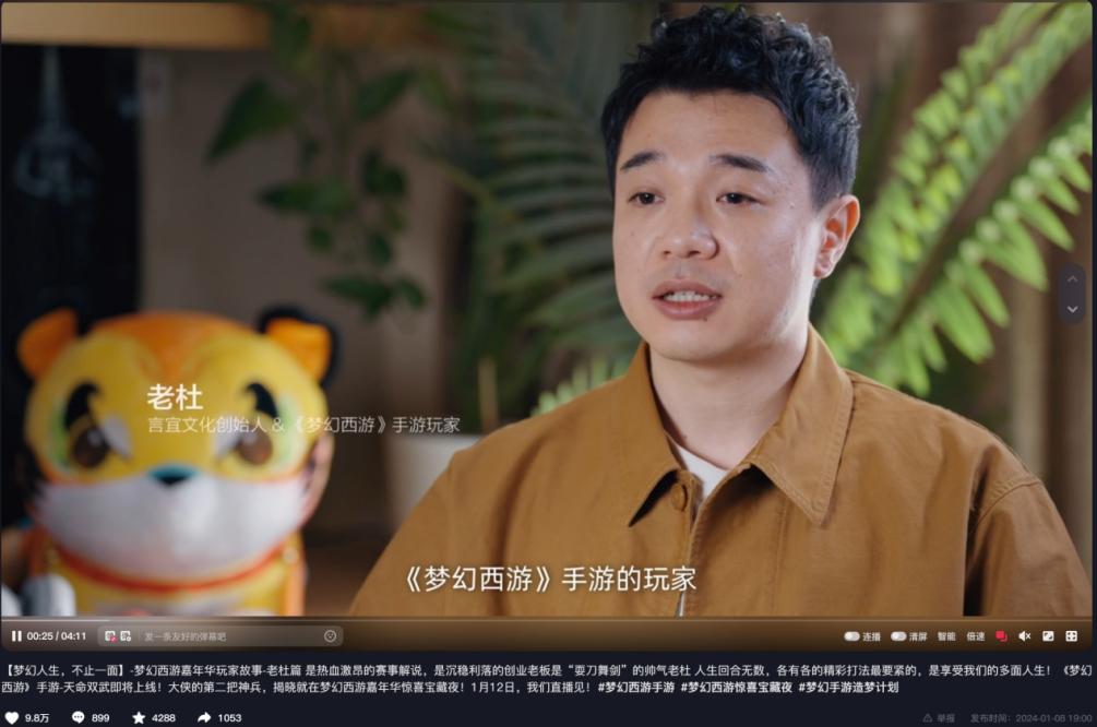 “造夢計劃”提供了視頻創作的道路,讓無數創作者在相應的賽道中展現出自己的個人魅力和技能,也試圖在裏面助力每一個夢想。如1月舉辦的“夢幻西遊驚喜寶藏夜”,官方對“老杜”和“小鬼九九”製作的紀錄片進行多渠道曝光,提升直播間的熱度,通過提升內容質量,享受爆款獎勵、專屬稱謂等多元化激勵政策讓更多玩家發現、認識、喜歡他們。