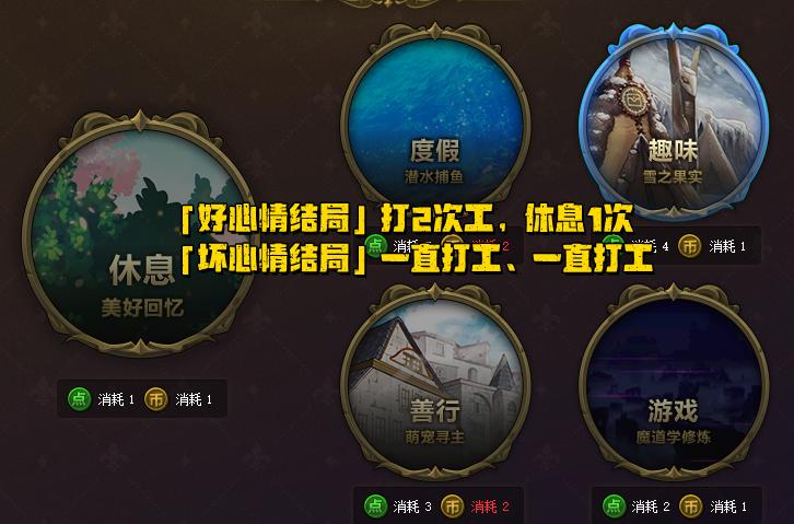 「好心情結局」打2次工,然後休息1次,以此循環操作直到女兒長到20歲,即可解鎖好心情結局。