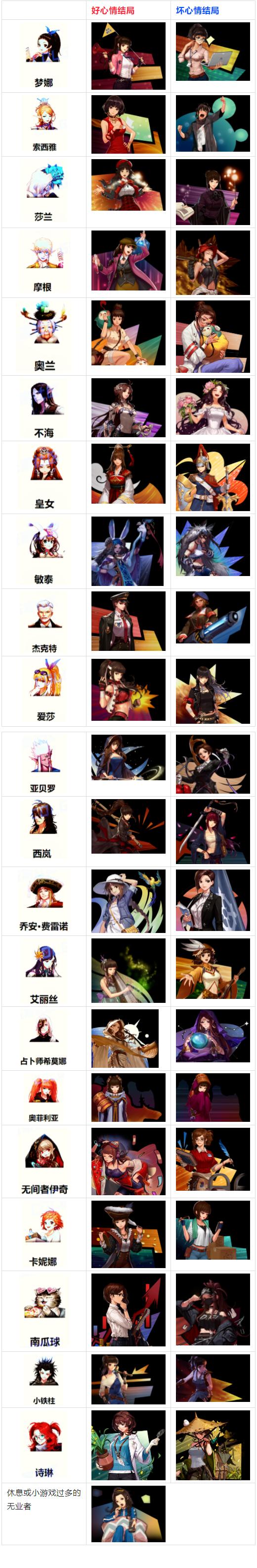 每一位NPC對應2種結局,“好心情結局”和“壞心情結局”。