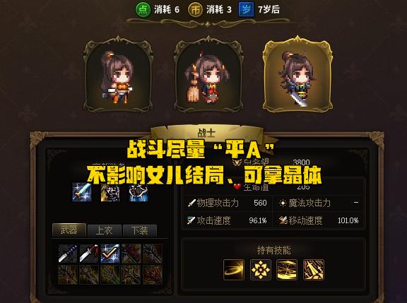 【2,戰鬥模式】需要注意的是,“戰鬥模式”並不會影響女兒養成結局,主要是爲了獲得獎盃解鎖一些道具。