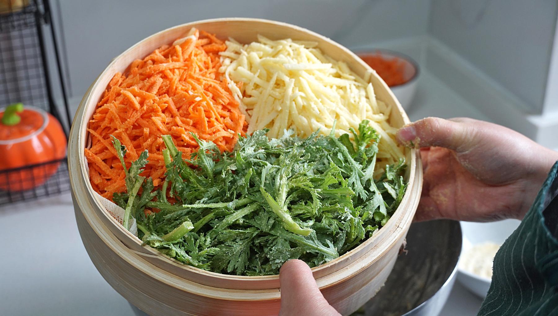 蒸菜:胡蘿蔔、茼蒿、土豆絲