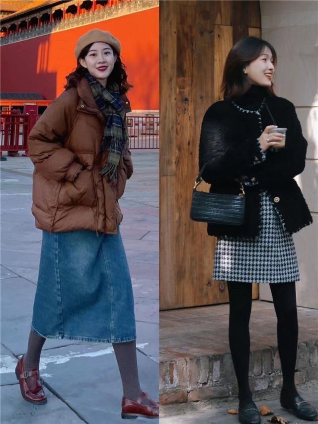 如果你喜歡簡約風格,可以選擇純色的打底褲搭配基礎色的長裙;更喜歡活潑一點的女生,就可以選擇打底褲露襪的穿法,再踩上一雙厚底鞋,小個子也能輕鬆hold住。