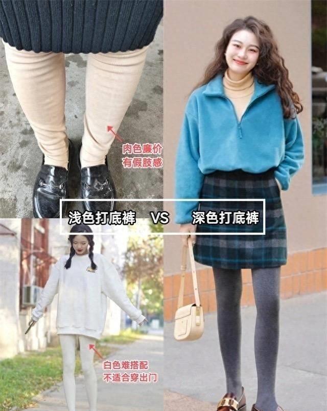 如果你的腿部有些許的肉肉,也不用擔心,因爲打底褲的設計多種多樣,尤其是色彩的選擇十分豐富,建議大家可以多穿深色打底褲,比淺色打底褲更顯瘦。