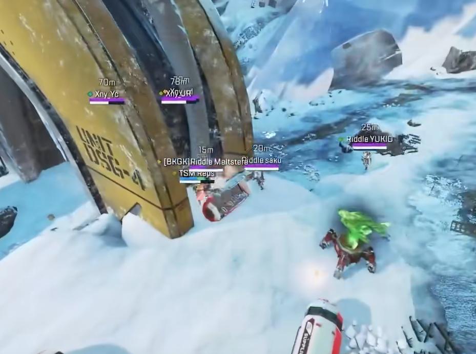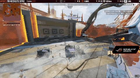 MDYW也通過對地圖的理解喫到一雞,他們在佔據高點後,活用投擲物以及班加羅爾的彈幕轟炸大招機制(本該落入虛空的導彈會集中刷到地面上),瞬間清空了一整支隊伍。