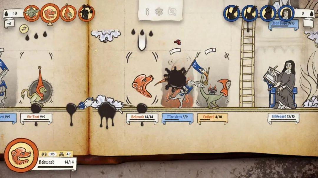 遊戲中的每一個角色,無論是揮劍的兔子、吹號的驢子,還是祈禱的貓主教,都以一種獨特的手繪風格呈現,讓人忍俊不禁。這種風格不僅爲遊戲增添了一抹幽默的色彩,也讓每一次戰鬥都充滿了“藝術”的氣息。