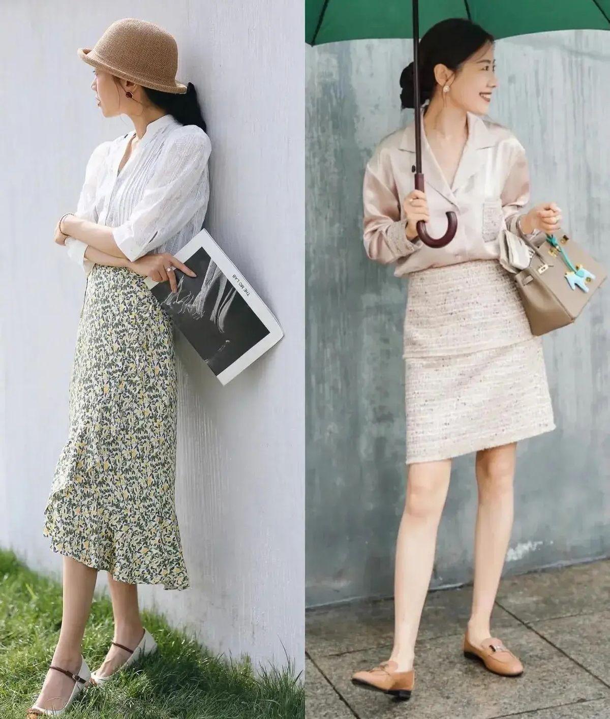 喜歡穿裙子的女人,可以優先選擇過膝長裙,再配合上寬鬆的裙襬,更有利於隱藏下身的短板。同時,還要學會分割身材比例,利用“塞腰”的方式,便能明示出腰線。