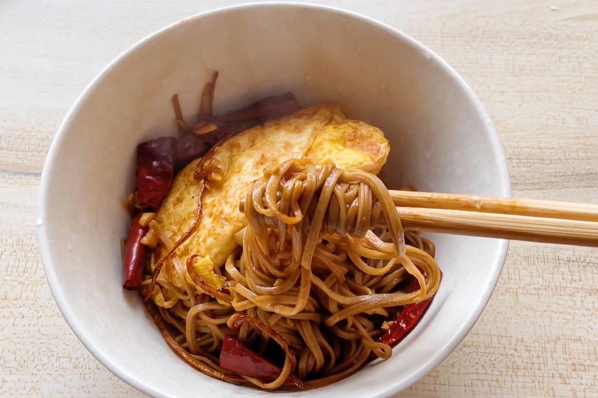食材:麪條、雞蛋、大蒜、幹辣椒、家常調料