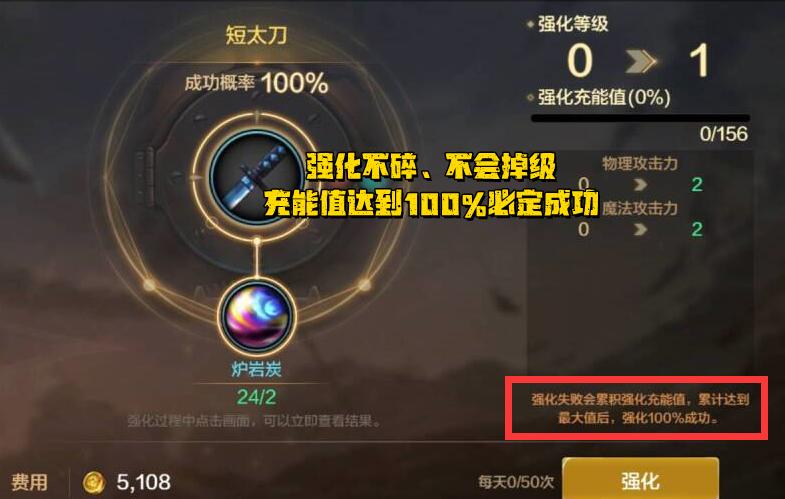 第二,強化系統存在“充能值”,當充能值達到100%的時候,下一次強化則必定成功,這其實就是俗稱的“保底系統”。