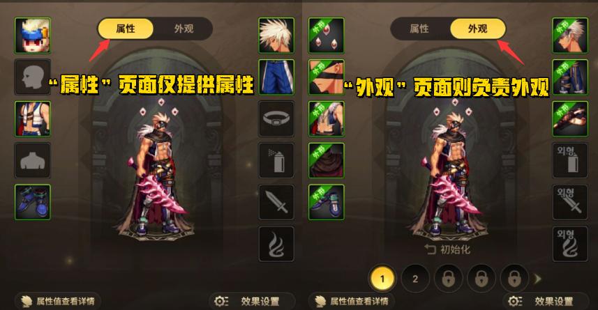 手遊中的時裝系統有2個界面,一個專門掌管“屬性”,另一個專門負責“外觀”!