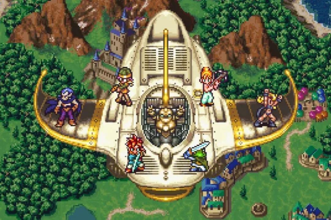 來自不同時代的戰士們乘坐於鳥山明設計的時光機(畫面來自2018年移植的PC版本)