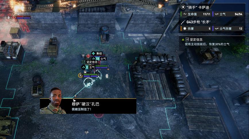 一個單位的士氣降至50%時,算作受到“壓制”,行動點減半,這時受到側面襲擊,還會喫易傷效果。一旦士氣歸零,他就會直接“崩潰”,行動點清空,除非隊友釋放恢復士氣的技能,否則他的回合會直接跳過。