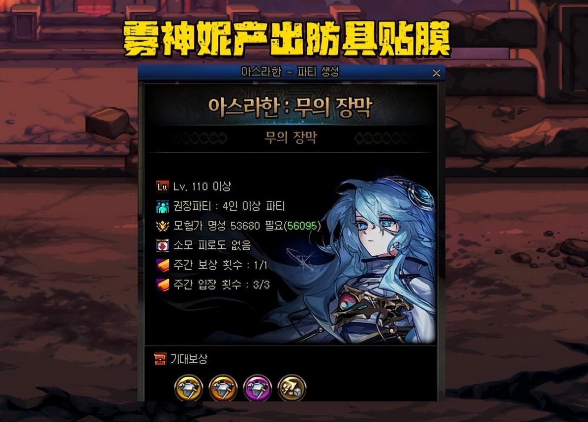 “霧神妮”的定位,可以參考“巴卡妮”,屬於大型團本前的小型預熱副本,主要產出新的防具貼膜,理論上來說,屬於必打。